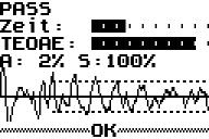Das Hörtestgerät gibt seine Ergebnisse in Form der Aussage „PASS“ für unauffällig oder „REFER“ für kontrollbedürftig aus. Wenn "PASS" auf dem Bildschirm des Hörtest-Gerätes erscheint, ist alles in Ordnung. Wenn "REFER" erscheint, besteht die Notwendigkeit einer Kontrolle innerhalb der nächsten Tage in Ihrer Geburtsklinik.